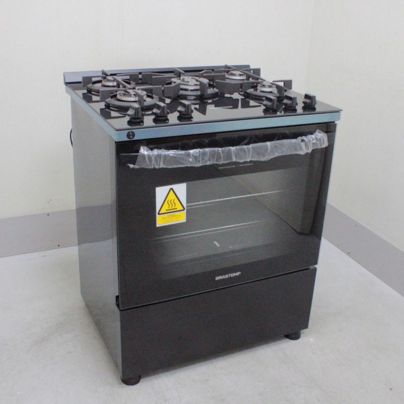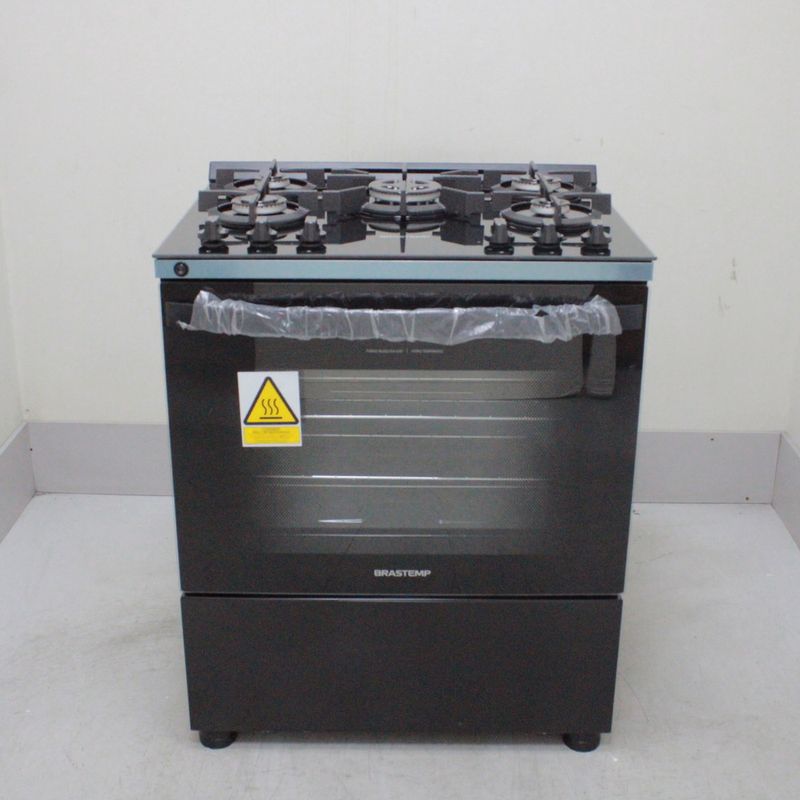 SeminovosEletrodomésticosFogãoFogão Brastemp 5 Bocas Preto Com Mesa de Vidro e Turbo Chama - BFS5VCEUS2_WOTIMO_CB6247070