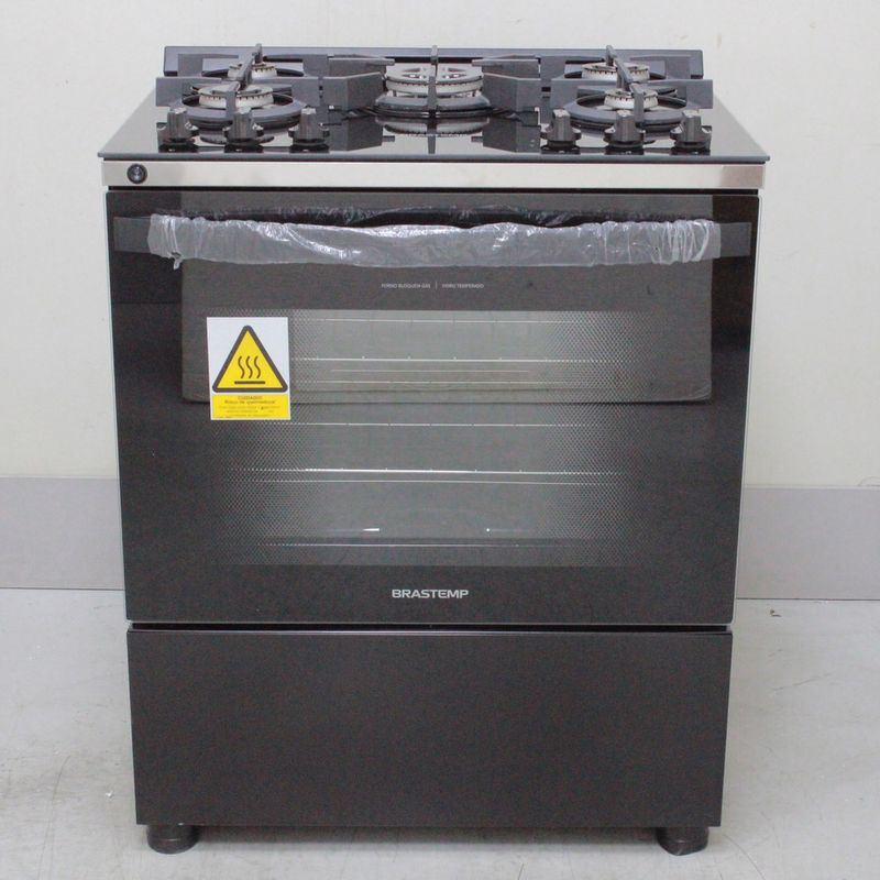 SeminovosEletrodomésticosFogãoFogão Brastemp 5 Bocas Preto Com Mesa de Vidro e Turbo Chama - BFS5VCEUS3_WBOM_CC6381475
