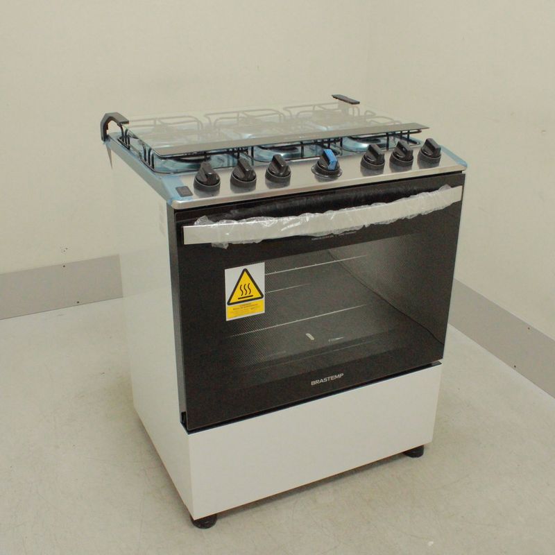 SeminovosEletrodomésticosFogãoFogão Brastemp 6 Bocas Branco Com Botões Removíveis E Exclusivo Aro Protetor - BFS6NCBUS1_WEXCELE_CI5347673