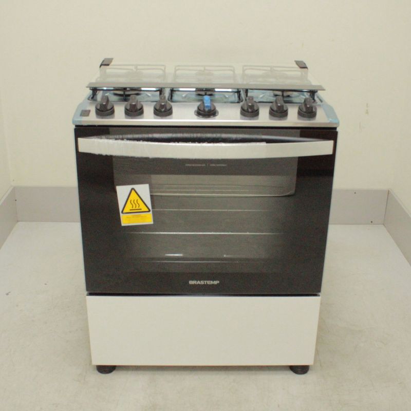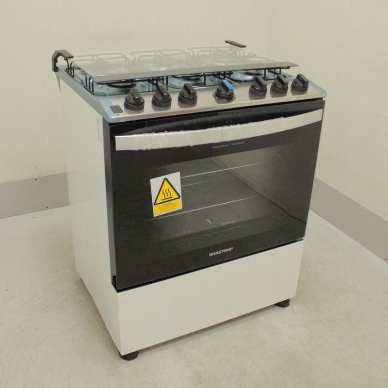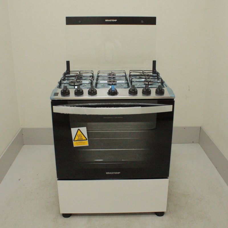 SeminovosEletrodomésticosFogãoFogão Brastemp 6 Bocas Branco Com Botões Removíveis E Exclusivo Aro Protetor - BFS6NCBUS1_WEXCELE_CI5445988