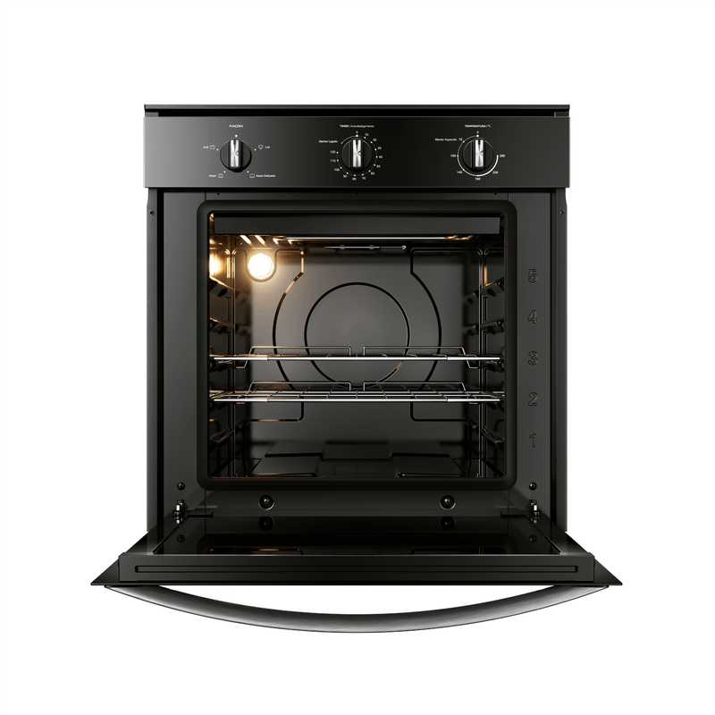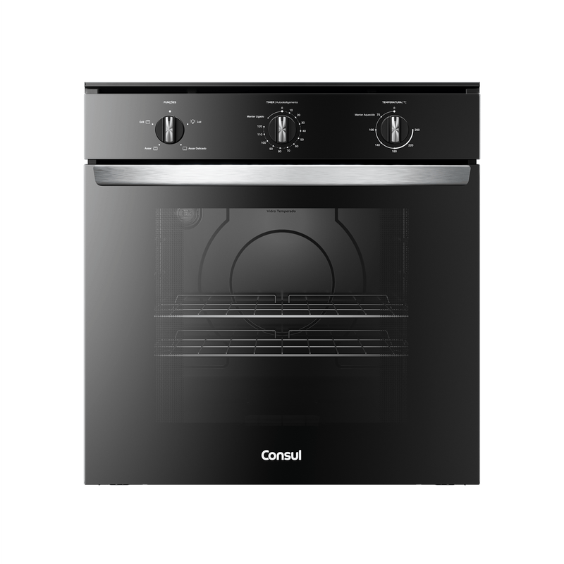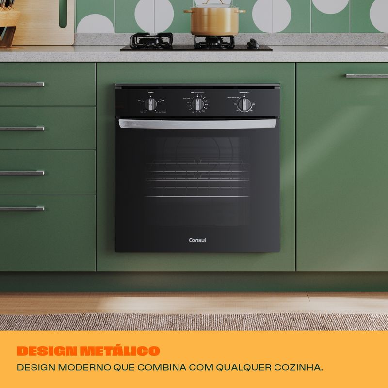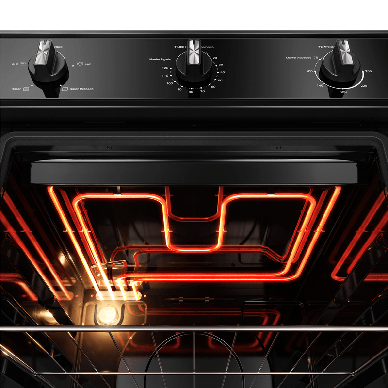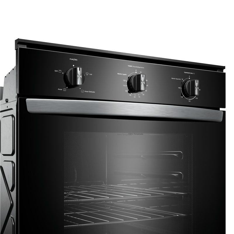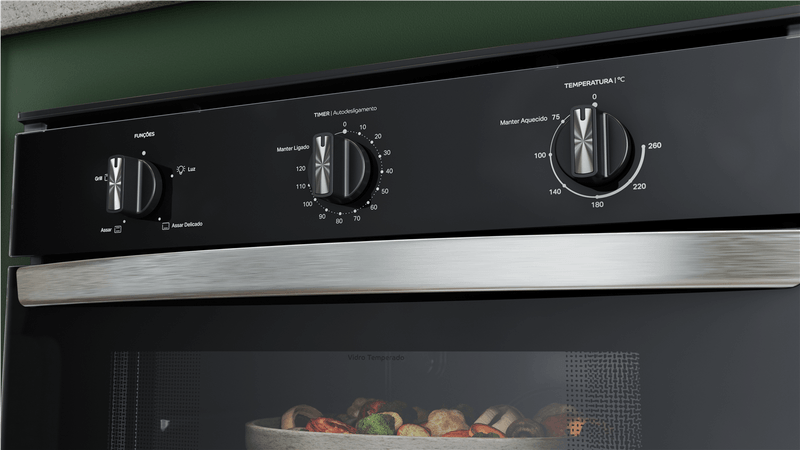 Design bem pensado pra você. O forno preto com acabamentos metálicos, traz o design moderno que combina com qualquer cozinha.