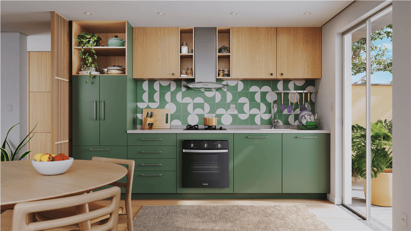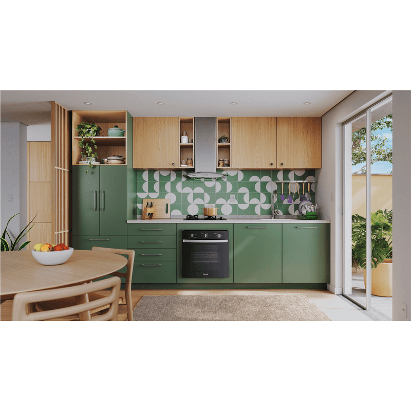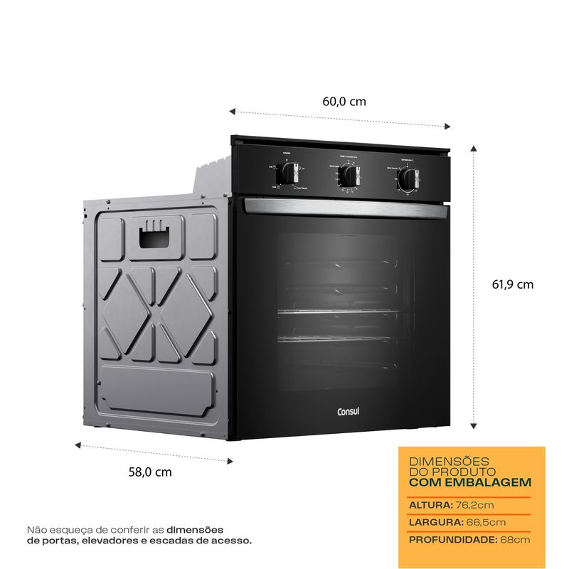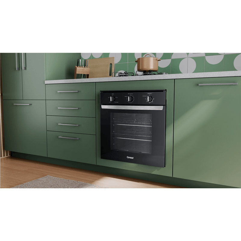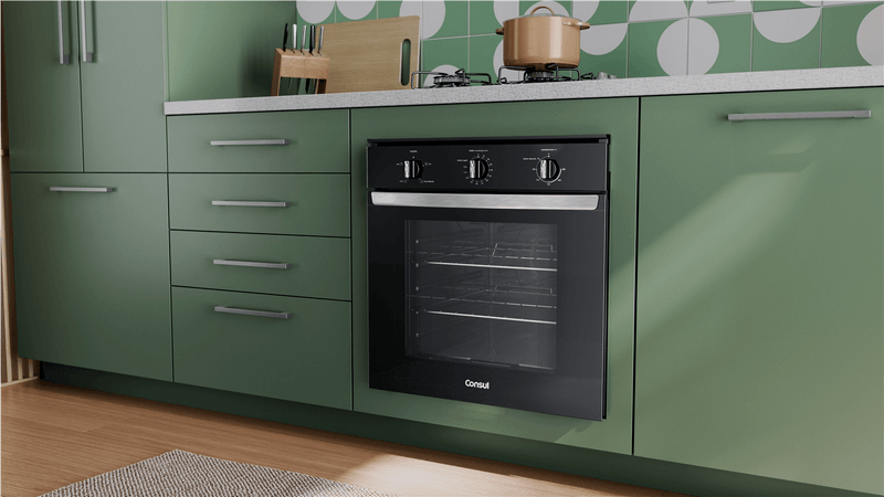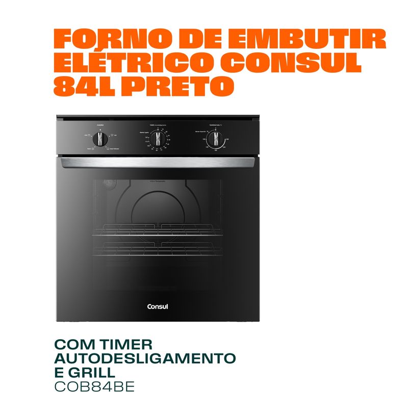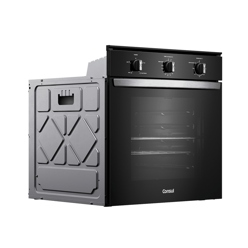Design bem pensado pra você. O forno preto com acabamentos metálicos, traz o design moderno que combina com qualquer cozinha.