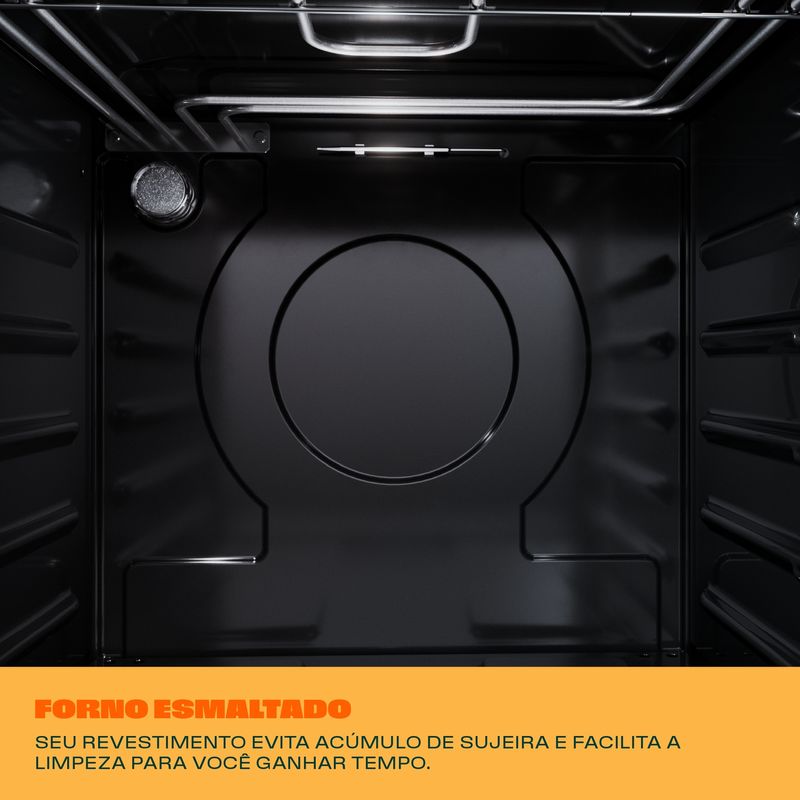 Seu revestimento esmaltado e liso evita acúmulo de sujeira e gordura, e ainda facilita o processo de limpeza, para você passar menos tempo limpando e mais tempo fazendo o que gosta.