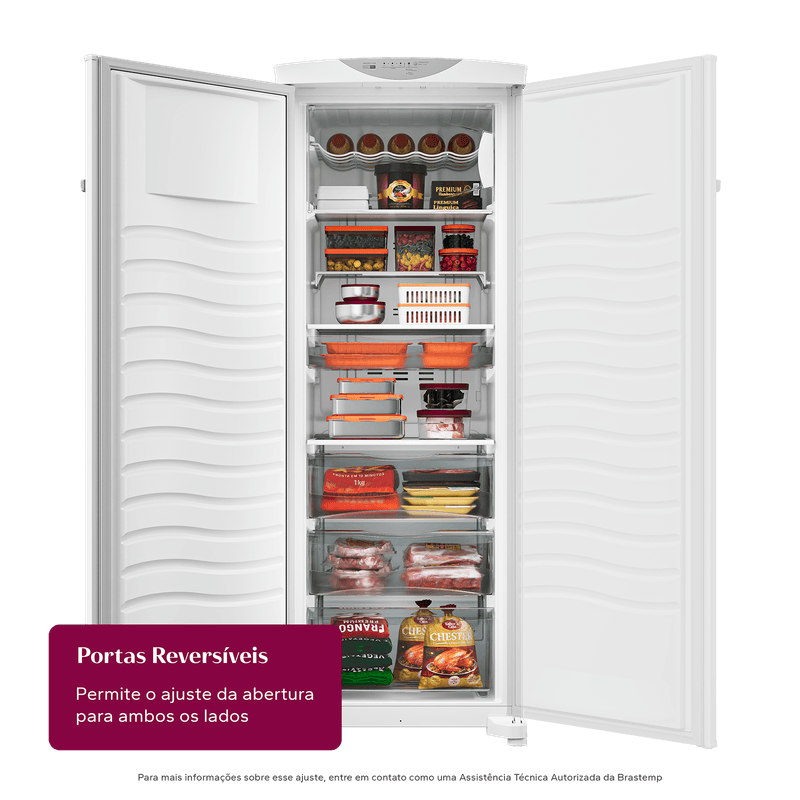 Mais liberdade para o seu espaço! Com portas reversíveis, o freezer se adapta à sua necessidade, permitindo o ajuste da abertura para ambos os lados.