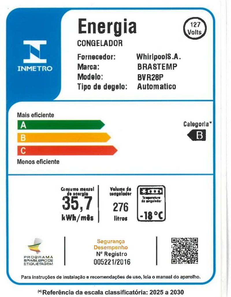 Seu freezer com performance de refrigeração eficiente que economiza até 5% de energia elétrica no ano.[1]