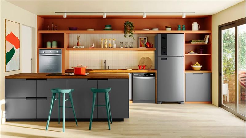 Revestimento especial da Brastemp com película impermeabilizante e materiais de alta qualidade que protege a sua geladeira contra ferrugens e corrosões. São 3 anos de garantia no material da porta da sua geladeira.