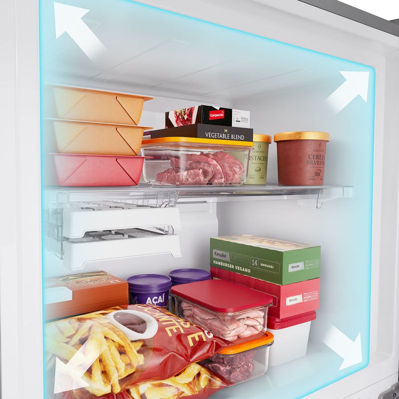 Com 512L, é ideal para todas as suas necessidades, desde o dia a dia até momentos de celebração. Os diferentes compartimentos permitem uma melhor organização e flexibilidade para armazenar seus alimentos do seu jeito. O seu mundo foi feito para caber o que você quiser.