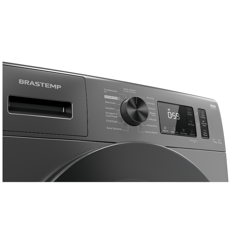 Suas roupas ficam limpas e secas em apenas 59 minutos. Com o Vaporizar, que utiliza vapor quente, evite longos ciclos de lavagem e elimine amassados¹ e odores² de forma fácil e eficiente. É praticidade que simplifica sua rotina.
