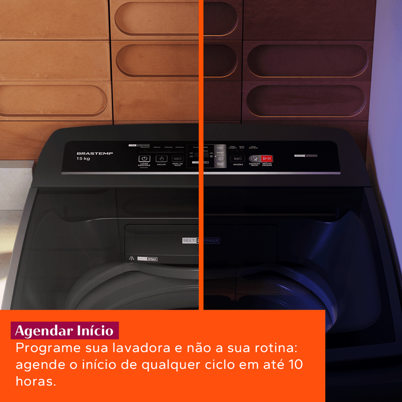 Programe sua lavadora e não a sua rotina: agende o início de qualquer ciclo em até 10 horas.