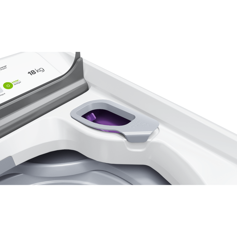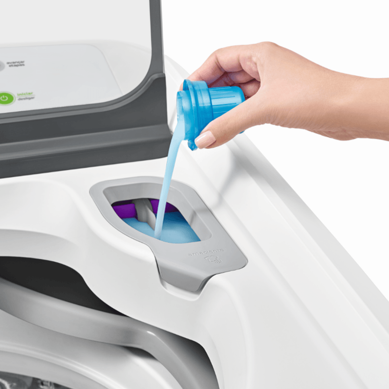Você consegue abastecer o sabão e o amaciante de maneira prática. E quando precisar, é só tirar e limpar com toda facilidade.