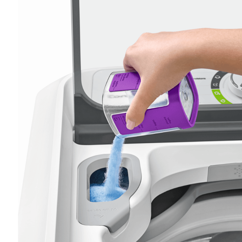 Saiba a medida ideal de sabão em pó para cada lavagem e economize até 70% de sabão [2] com o exclusivo copo dosador.