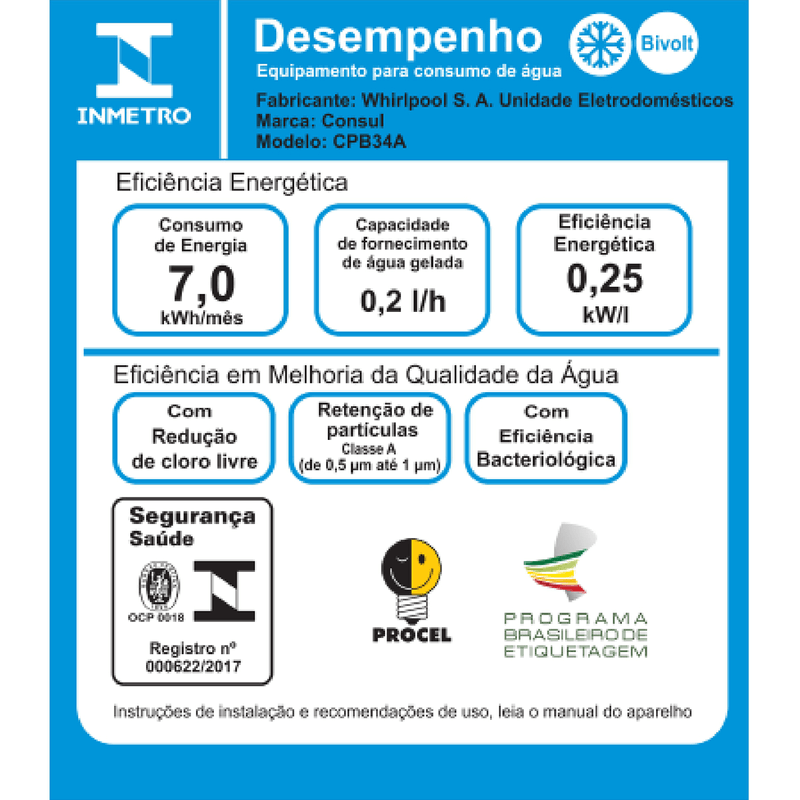 OutletEletrodomesticosPurificadorPurificador de Água Consul Cinza Refrigerado, com Proteção Antibactérias - CPB34AF Outlet